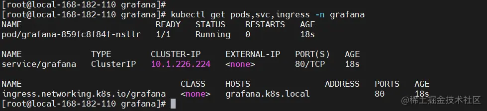 kubectl get pods,svc,ingress -n grafana