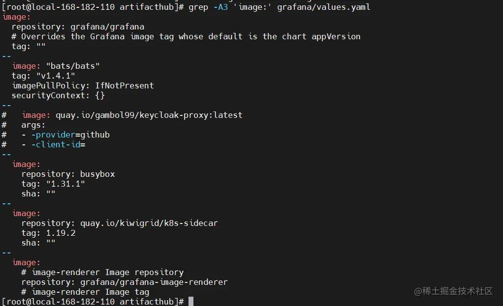 grep -A3 'image:' grafana/values.yaml