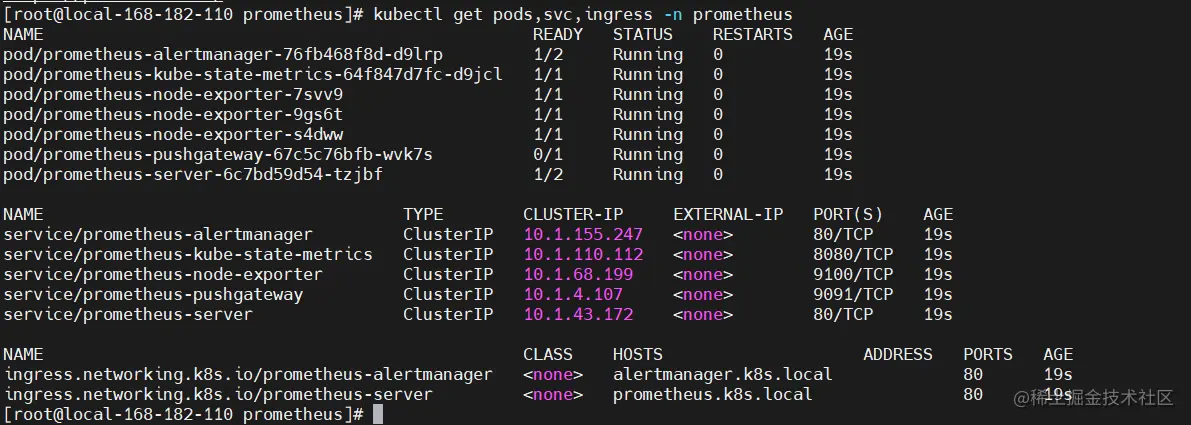 kubectl get pods,svc,ingress -n prometheus