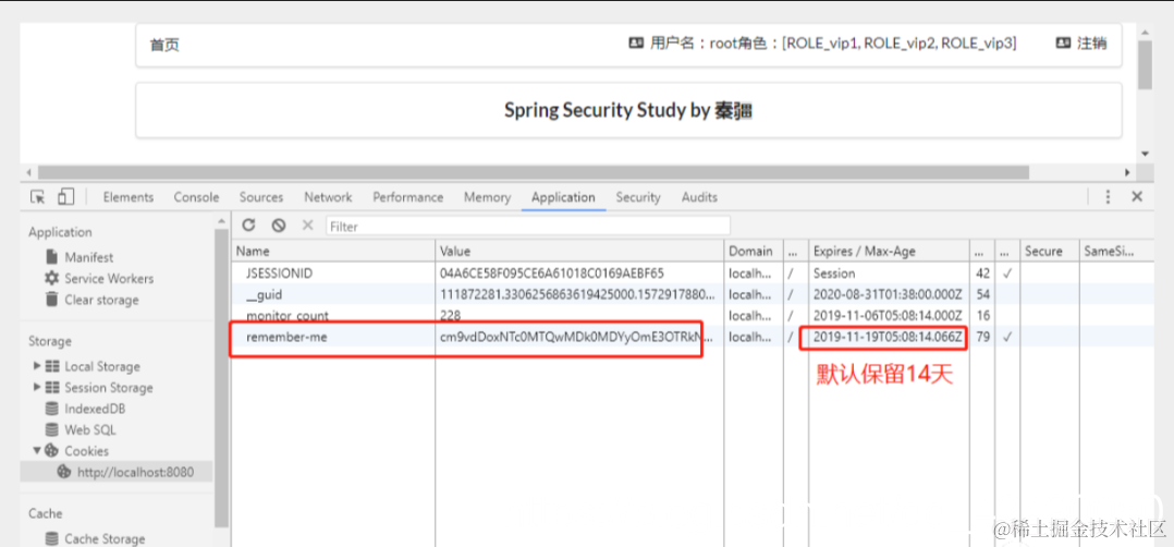 3、我们点击注销的时候,可以发现,spring security 帮我们自动删除了这个 cookie