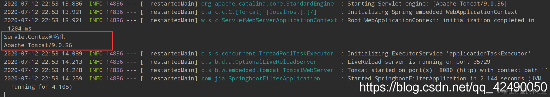 启动项目后,控制台输出: