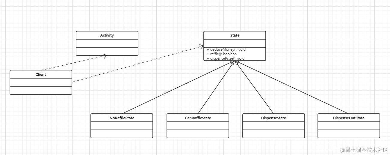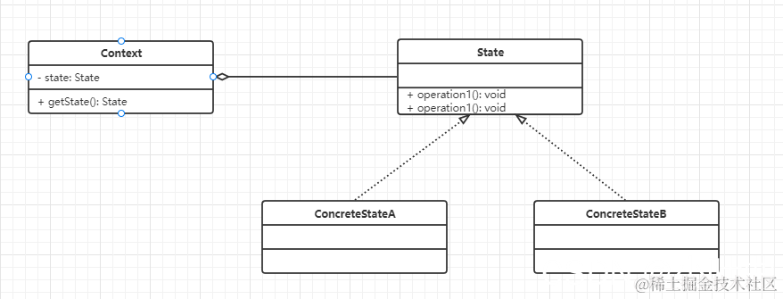 - 状态模式(State Pattern):它主要用来解决对象在多种状态转换时,需要对外输出不同的行为的问题。状态 和行为是一一对应的,状态之间可以相互转换