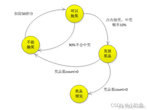 - 活动有四个状态: 可以抽奖、不能抽奖、发放奖品和奖品领完
