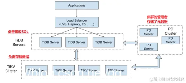 - 存储集群的元信息(某个 Key 存储在哪个 TiKV 节点)