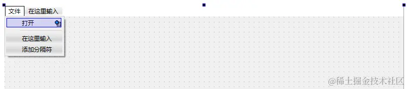 可以直接添加,记住回车保存,在添加二级目录“打开”时,发现无法输入中文,解决方法就是,先输入英文,然后像修改Button控件上的文本一样,在属性栏中进行修改。
