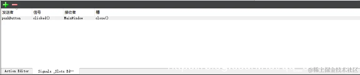 设计窗口下方可以看到信号和槽的编辑框,选择加号添加一个连接,然后依次选择对应的信号、槽、发送者和接受者即可。