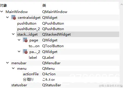 在属性栏中可以修改objectName(对象名),text(按钮上的文本)