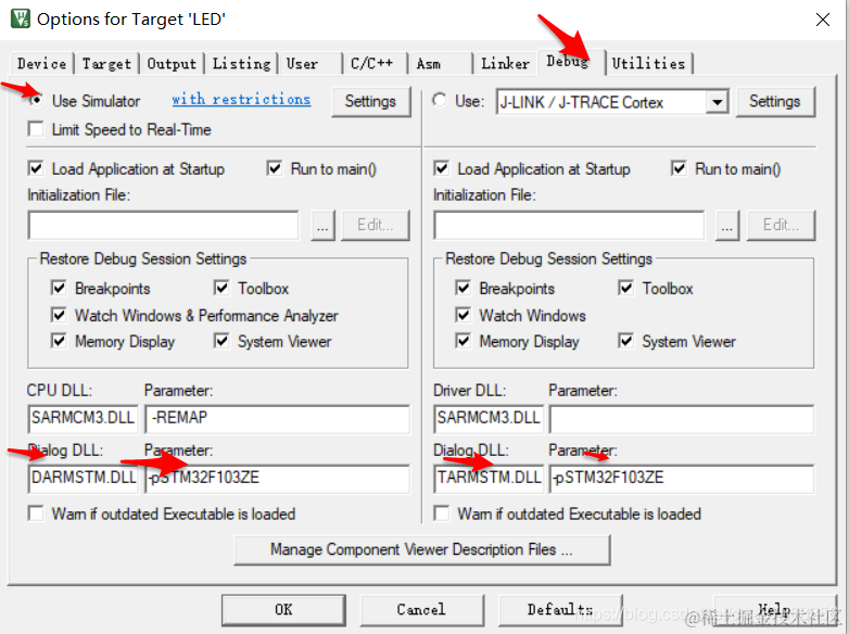 首先就是配置上面图中的debug,选择软件仿真。然后是选择芯片,根据自己的硬件芯片选择。