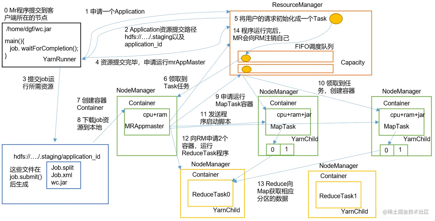 - 程序资源提交完毕后,申请运行mrAppMaster。
