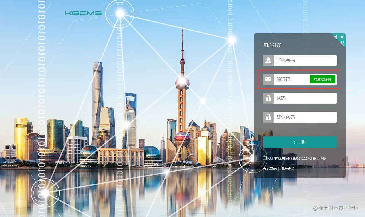 1、当页面上有一个获取短信验证码的按钮,我们接入KgCaptcha凯格行为验证码,在点击获取短信验证码前,令其需要先通过图形验证码后,才可发送短信验证码。