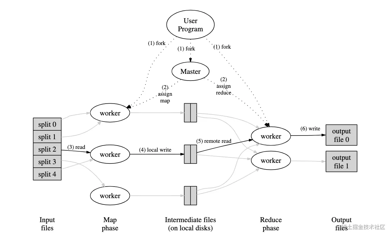 在这个示例中,我们首先划分输入数据并启动程序副本。然后,我们执行map任务并生成一组中间结果。接下来,我们对这些中间结果进行排序和分区,并执行reduce任务。最后,我们返回最终输出结果。