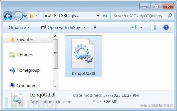 与Word文档一样,Emotet DLL也被填充为526MB,以阻碍杀毒软件对恶意软件的检测能力。