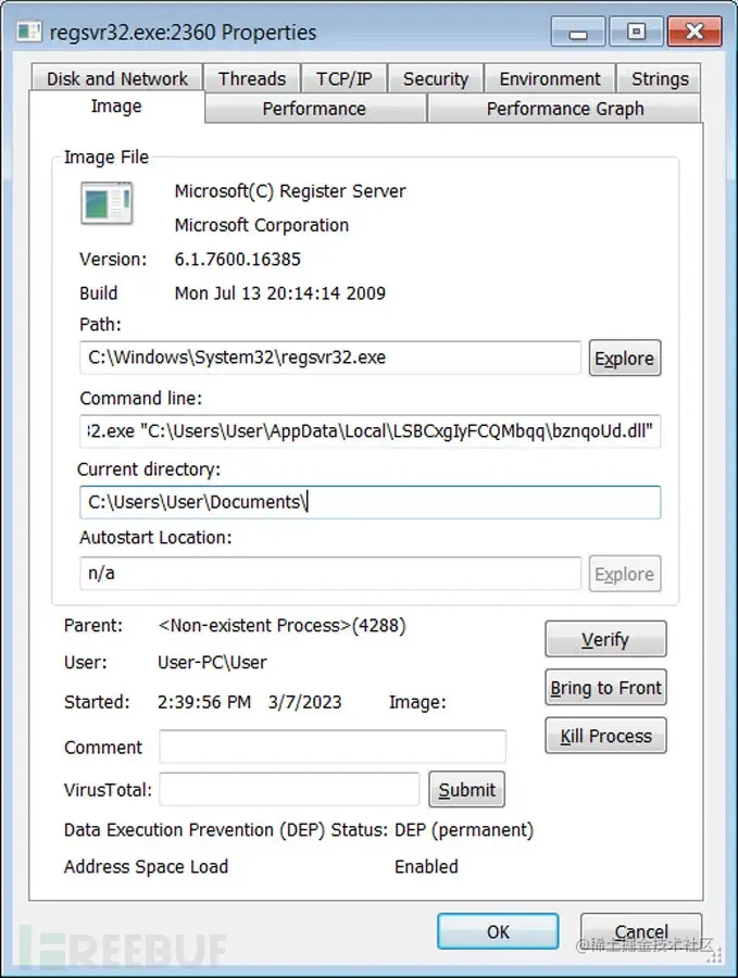 下载后,Emotet会被保存到%LocalAppData%下的一个随机命名的文件夹,并使用regsvr32.exe启动。