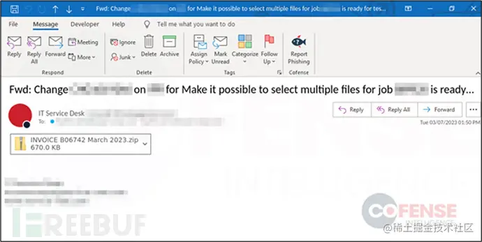 攻击者没有像以前的活动那样使用回复链电子邮件,而是利用冒充是发票的电子邮件,如下图所示。