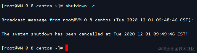 - 如果操作的是远程服务器,不要使用关机命令,只能够重启;