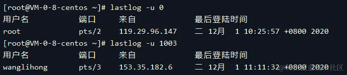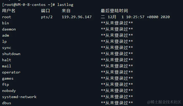 命令作用:检查用户的上次登录信息