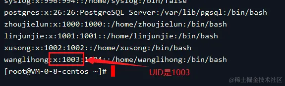 0和1003分别对应root和wanglihong的uid。