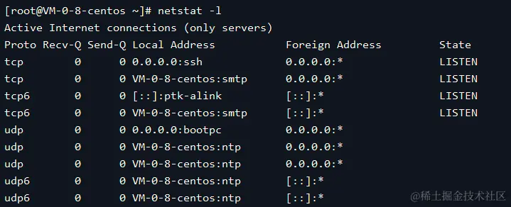 6.4、显示处于监听状态的端口