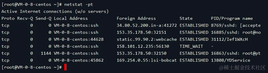 netstat -pt