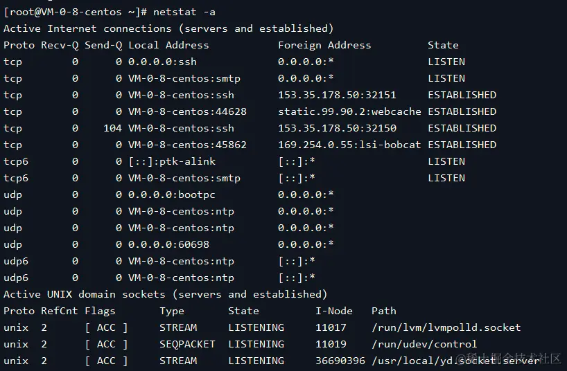6.1、列出所有端口 (包括监听和未监听的)