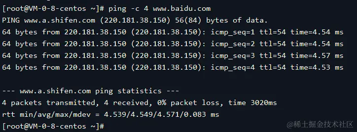 ping -c 4 www.baidu.com
