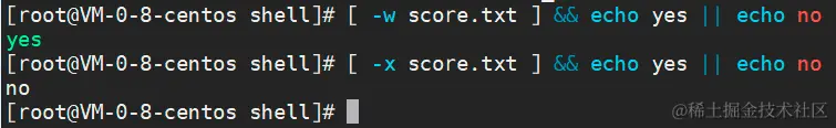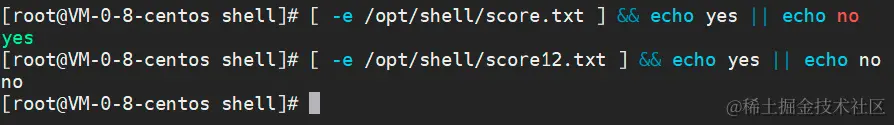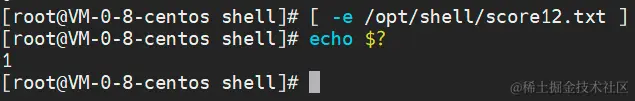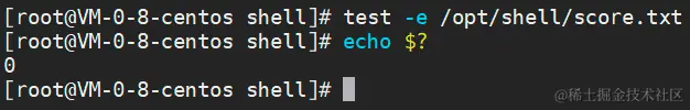 说明:中括号两边必须有空格,只能为[ -e /opt/shell/score.txt ]。