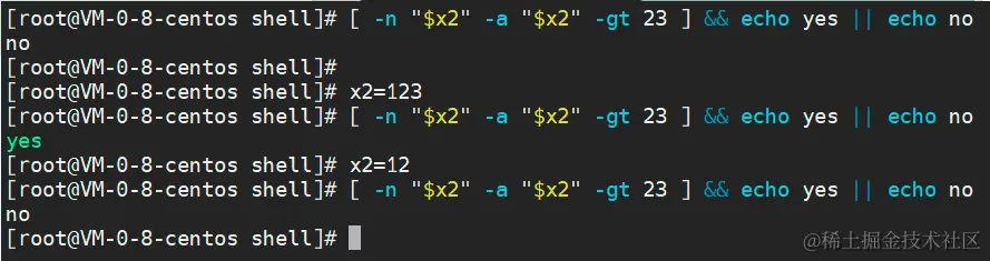 | 判断1 -a 判断2 | 逻辑与,判断1和判断2都成立,最终的结果才为真 |