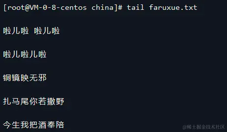 查看faruxue.txt文件,动态显示文件末尾内容