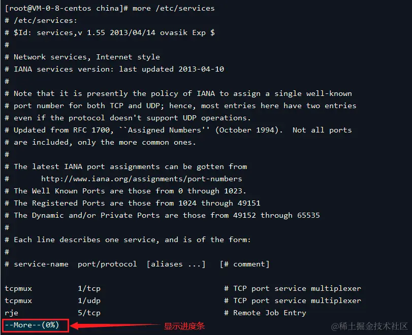 more /etc/services