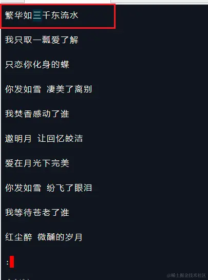 - less可以根据关键字查找内容, 可以按 /,输入关键字。 搜索内容会高亮显示,按N键,会切换到下一个。