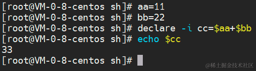 [root@VM-0-8-centos sh]# declare -i cc=$aa+$bb