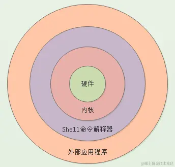 Shell和硬件、Linux内核之间关系,如下图所示: