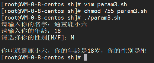 echo "你叫$name,你的年龄是$age岁,你的性别是$gender!"
