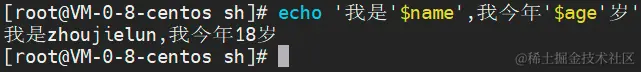 echo '我是'\$name',我今年'$age'岁'