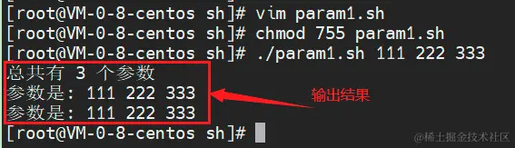 echo "参数是: $@" #使用$@也代表所有参数