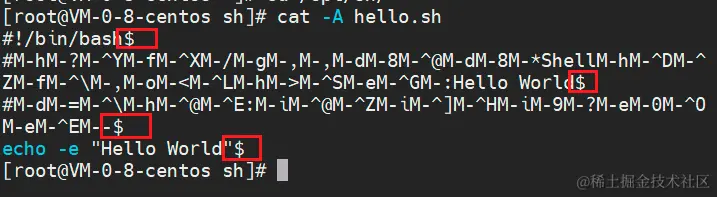 Linux系统下shell脚本格式,$表示回车换行。如下图所示: