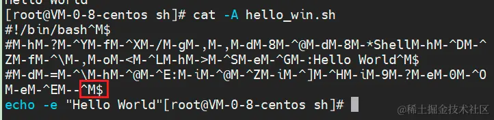 Windows系统下shell脚本格式,^M$表示回车换行。如下图所示: