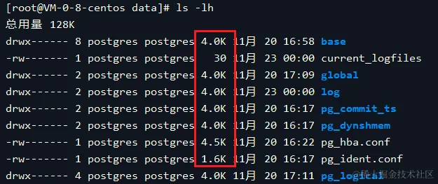 drwx------ 8 postgres postgres 4096 11月 20 16:58 base