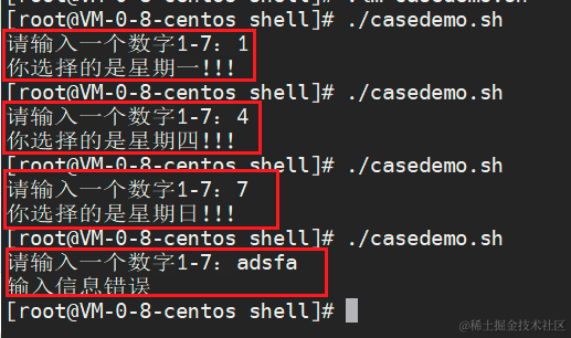 编写脚本实现功能:当输入1-7的时候,分别显示选择的是星期一、星期二、星期三、星期四、星期五、星期六、星期日。当输入的时候其他的时候,显示输入错误。