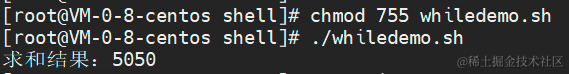 给whiledemo.sh文件赋予执行权限,并且执行文件。输出结果如下图所示: