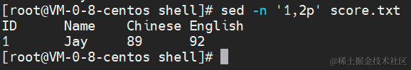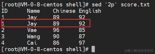 从图中可以看到重复输出了第二行,而且其他行也输出了。我们的目的是想只输出第二行,其他的行不输出,此时需要加入-n参数。