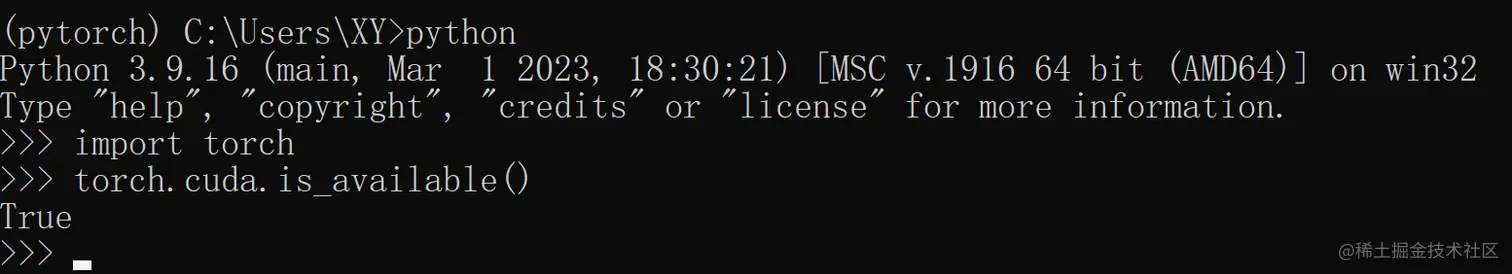 import torch torch.cuda.is_available()出现True说明配置成功!