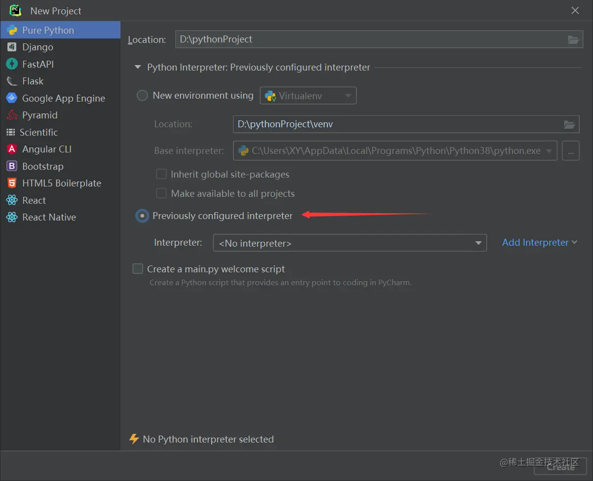 打开Pycharm,创建新项目