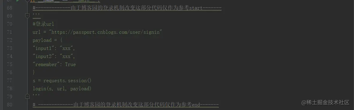 73 # -------------由于博客园的登录机制改变这部分代码仅作为参考end-------