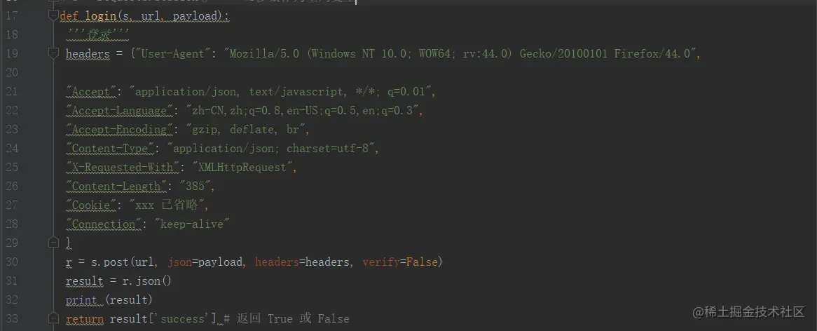 2、登录函数传三个参数,s 是需要调用前面的 session 类,所以必传,可以传个登录的 url,然后 payload 是账号和密码