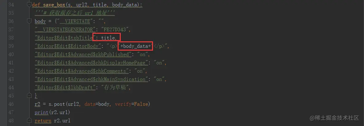 1、编辑内容的标题 title 和正文 body_data 参数化了,这样后面可以方便传不同值