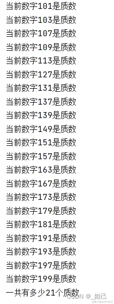 第二个for循环就是取 i 的值,然后依次去除以2,3,4....一直到i-1 求模,如果取模为0,则表示是可以除尽的,那就说明不是质数, flag = false;跳出循环,如果都不为0,则不会改变flag的值,flag是true 就是质数