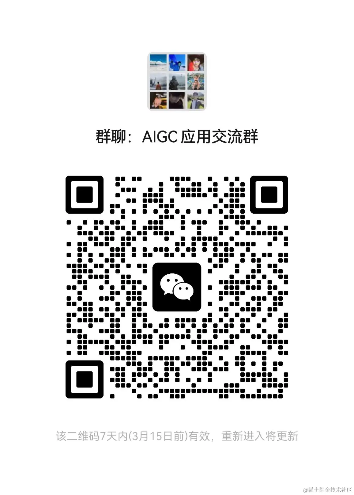 如果想讨论更多关于 AI 内容生成相关话题, 可以加入如下微信群.