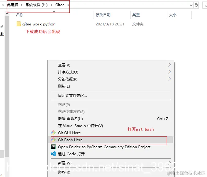 在自己需要下载项目的目录中打开git客户端,如下图: