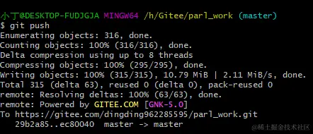 # 推送到远端仓库码云上,项目大的话,时间会久些